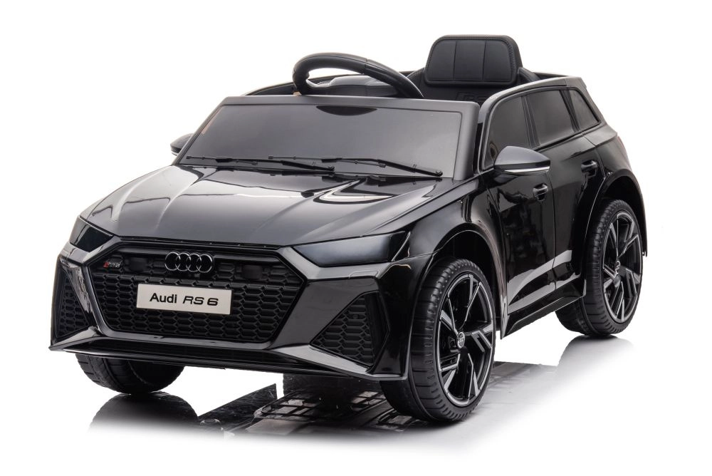 Cette voiture électrique pour enfants Audi RS6 noire offre aux petits conducteurs une expérience de conduite réaliste avec un design élégant et des détails de marque.