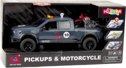 Le pick-up avec moto est conçu pour les plus jeunes passionnés d’automobile et propose des fonctions qui enrichissent le jeu et stimulent l’imagination. Les portes et le hayon arrière ouvrants facilitent le chargement de la moto, permettant de créer divers scénarios de jeu, des missions de sauvetage aux courses tout-terrain.
