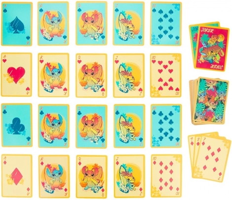 Cartes à jouer imperméables Stitch, idéales pour jouer à la plage ou au bord de la piscine. L’emballage comprend 54 cartes, dont des jokers.