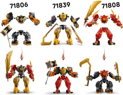 Les collectionneurs apprécieront la possibilité de mixer et échanger les pièces avec d’autres mechas configurables de 2024 (vendus séparément) : Mecha de l’élément Terre de Cole (71806), Mecha de l’élément Tech de Sora (71807), Mecha de l’élément Feu de Kai (71808) et Mecha de la puissance élémentaire de Lloyd (71817). Cette compatibilité stimule la créativité et des possibilités de construction infinies.