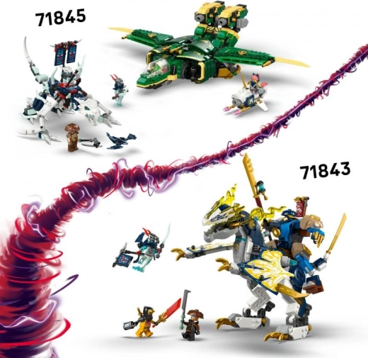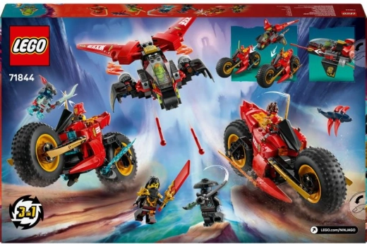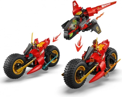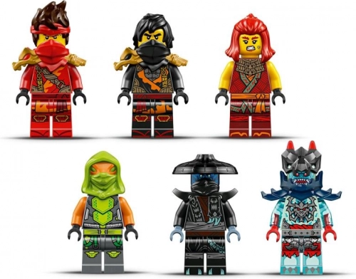 Ce set détaillé apporte une action palpitante au sol comme dans les airs. Le véhicule de combat ninja 3-en-1 se divise facilement en trois machines distinctes : la moto agile de Kai, la moto enflammée de Wyldfyre et le jet aérodynamique de Frak doté de deux lance-projectiles pour un jeu dynamique. La construction et la reconstruction sont intuitives et amusantes.