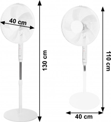 Le ventilateur propose un réglage continu de la hauteur de 110 à 130 cm, permettant un placement optimal dans tout espace. Associé à l’inclinaison réglable et à l’oscillation, il offre un contrôle total de la direction et du niveau de refroidissement.