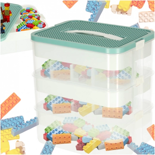 Organisateur pour jouets, briques et petits objets avec couvercle et compartiments, 3 niveaux