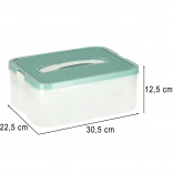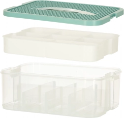 L’organisateur est fabriqué en plastique résistant, tandis que le couvercle bleu apporte une touche attrayante.