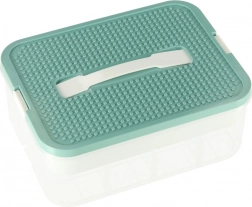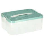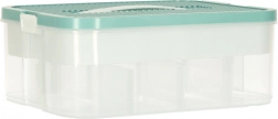 - Boîtier et insert : transparent, blanc ; Couvercle : turquoise