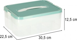 Cet organisateur est la solution idéale pour celles et ceux qui souhaitent maintenir de l’ordre pour les jouets, les jeux de construction ou autres petits objets. Il comprend une boîte de rangement transparente avec des loquets robustes pour une conservation sûre du contenu.
