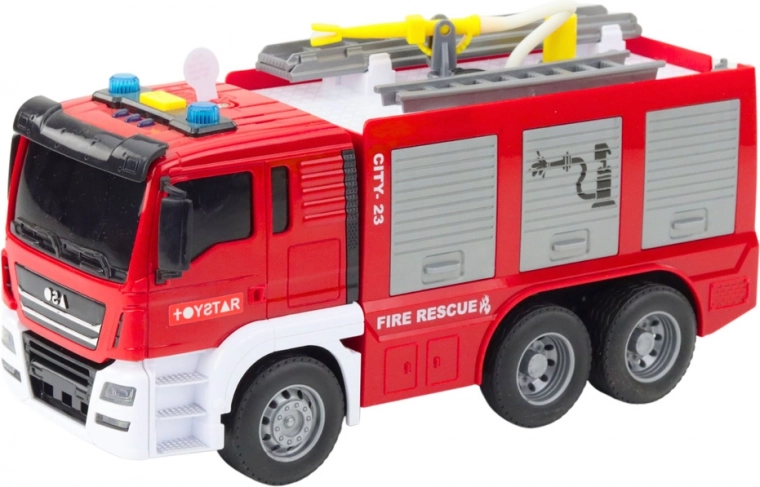 Le grand camion de pompiers offrira à votre enfant l’expérience d’une véritable opération de sauvetage. Le camion est équipé d’un réservoir réel et d’un tuyau flexible, permettant un jeu réaliste lors de « l’extinction d’incendies » avec de l’eau. Ce détail garantit un jeu plus réaliste et plus amusant. La propulsion à inertie assure qu’après une légère poussée, le camion avance tout seul, prêt pour l’action.