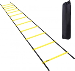 Le set comprend une housse de transport pratique, qui protège l’échelle pendant le stockage et le transport et évite qu’elle ne s’emmêle avec d’autres équipements. L’échelle se déplie facilement et occupe peu d’espace, ce qui permet de l’utiliser sur les terrains, dans le jardin, en salle de sport ou dans des halls sportifs.