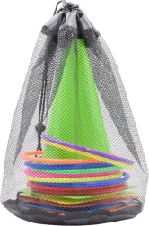Le contenu de l'ensemble inclut 11 cerceaux colorés, excellents pour les jeux de lancer et les activités d'adresse, 6 cônes d'entraînement pour des parcours d'obstacles et 10 sacs de gymnastique pouvant être utilisés pour des jeux sensoriels, le lancer ou comme poids. Tous les composants sont fabriqués à partir de matériaux durables et sûrs, adaptés aux enfants et aux adultes.
