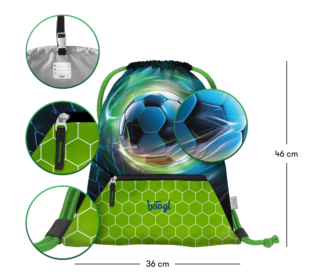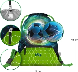Set scolaire léger et résistant Baagl Zippy Plus avec motif de ballon de football, un choix idéal pour les élèves de première année. Il se compose d’un cartable, d’une trousse et d’un sac pour chaussures de rechange, chacun offrant des caractéristiques uniques et une haute qualité.