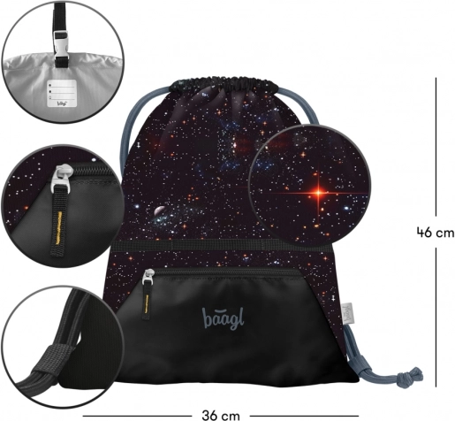 Sac stylé Pixel Space de la marque Baagl, un choix idéal non seulement pour les chaussures d’intérieur à l’école, mais aussi pour diverses activités de loisirs. Fabriqué en matériaux résistants et lavables avec des cordons confortables et une poche pratique zippée.