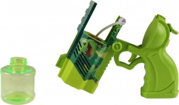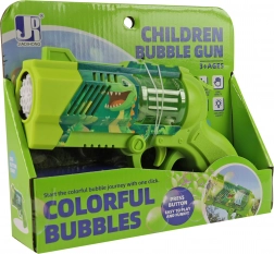 Amusant pistolet à bulles en forme de dinosaure qui crée des milliers de bulles en un instant. Parfait pour jouer dehors comme à la maison, avec un effet lumineux pour encore plus de fun. Fonctionne avec 4× piles AA (non incluses). Il suffit de verser la recharge de liquide à bulles dans le réservoir et la fête peut commencer.