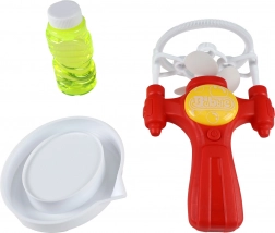 Il suffit de verser la solution à bulles dans le bol fourni, d’immerger la tête à anneaux et d’appuyer sur le bouton d’alimentation. Le ventilateur intégré met immédiatement les anneaux en rotation et libère un flux de bulles délicates, parfait pour le jardin, le parc ou une fête d’enfants.