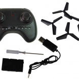 Le drone RC Chasseur Bleu est conçu dans des couleurs attrayantes bleu et noir qui attirent l’œil au premier regard. Grâce à des matériaux légers, il ne pèse que 46 grammes, ce qui permet une manœuvrabilité aisée en vol.