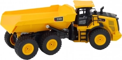 Camion télécommandé de couleur jaune avec la désignation du modèle 330t, un jouet parfait pour vos petits passionnés de machines de chantier. Grâce à ses grandes roues, son système de basculement et sa fabrication de qualité, il offre une expérience réaliste et permet un contrôle sans faille grâce à la technologie 2,4 GHz.