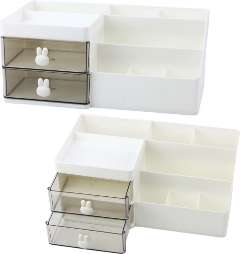 L’ensemble de l’organisateur est fabriqué en plastique résistant, adapté à un usage quotidien. Son design minimaliste et ses couleurs neutres s’intègrent parfaitement à tout espace – que ce soit au bureau, dans une chambre d’enfant ou dans un bureau à domicile. Les poignées de tiroir en forme de lapins apportent du charme et un style unique.