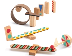 Testez votre imagination et votre sens de la planification avec cette piste en bois Zig Go créative. Construire et lancer les éléments en bois procure à la fois du plaisir et développe la pensée logique :