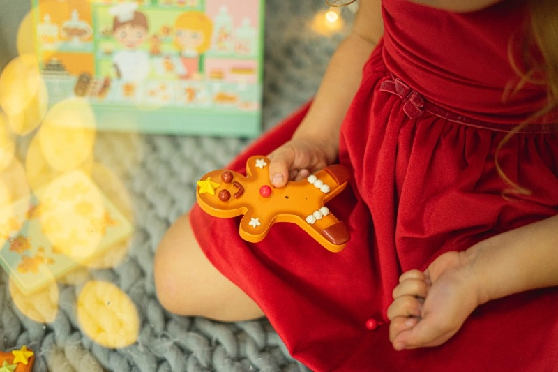 Ce set créatif en bois apporte aux enfants la joie de pâtisser sans miettes ni désordre. Les pièces s’assemblent facilement et, grâce aux ouvertures bien pensées, restent en place, permettant de créer encore et encore de nouvelles combinaisons gourmandes. Le set est rangé dans une boîte illustrée qui sert également de surface de travail pratique.