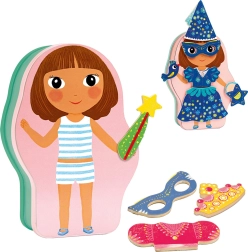 Puzzle magnétique féerique pour petites créatrices dans une boîte pratique en forme de fée. Les enfants s’amusent avec d’innombrables combinaisons de tenues et d’accessoires grâce à 24 pièces magnétiques, qui se fixent facilement et solidement. La boîte double face propose deux personnages différents, pour un jeu sans fin.