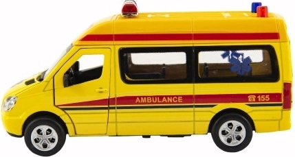 Cette ambulance détaillée combine un châssis métallique solide avec des éléments en plastique résistants et est idéale pour le jeu créatif. Grâce à la rétrofriction, elle roule sans télécommande, tandis que les portes avant et arrière ouvrantes renforcent l’authenticité et l’interactivité.