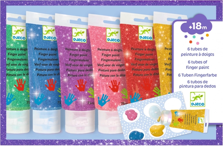 Les peintures au doigt DJECO offrent une formidable façon de stimuler la créativité et l’amusement des enfants. Les teintes pailletées apportent un effet lumineux unique.