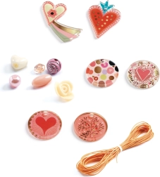 Coffret créatif pour petites et petits bijoutier·ère·s avec des motifs de cœurs dans des tons délicats. Contient des perles et des accessoires pour réaliser des bracelets et des colliers, développe la motricité fine, la créativité et la concentration.