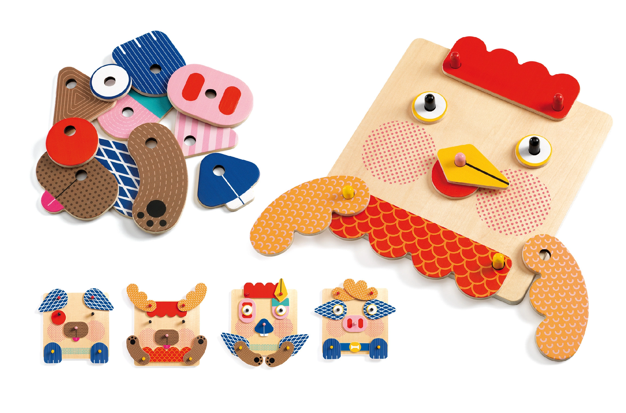 Découvrez le monde créatif de Djeco avec cet incroyable coffret en bois pour créer des visages d’animaux. Les enfants peuvent assembler une infinité de visages d’animaux amusants à partir de différentes pièces.