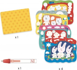 Découvrez la magie des albums de coloriage à l'eau DJECO, qui ravissent tous les enfants. Il suffit de remplir le pinceau d'eau et de commencer à peindre. Une fois le papier sec, le coloriage revient à son image d'origine et les enfants peuvent recommencer: