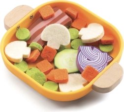 Le set pour enfants Djeco Cook & Scratch est conçu pour encourager le jeu culinaire et le développement des compétences en cuisine chez les plus petits. Le set comprend une poêle en bois avec une surface intérieure munie de velcro, ce qui permet de fixer les aliments en bois fournis. Les enfants apprennent ainsi les bases de la cuisine et peuvent imiter les adultes en train de cuisiner.