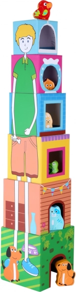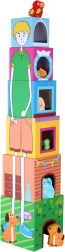 Cette charmante tour à empiler en cubes de carton résistants et petits animaux en bois apprend aux enfants à classer les tailles, à appréhender l’espace et à développer leur dextérité. On empile les cubes du plus grand au plus petit pour former une tour stable d’environ 58 cm de hauteur, et grâce aux ouvertures dans les cubes, les enfants y insèrent les animaux correspondants.