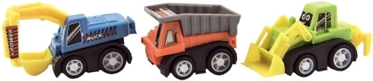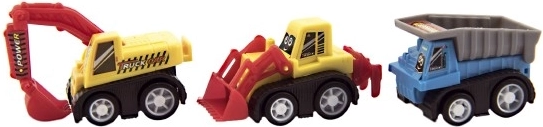 L’emballage comprend différents types de machines, comme une pelle, une chargeuse, un bulldozer ou une benne, formant la base idéale d’un petit chantier. Grâce à leurs dimensions compactes, elles conviennent à la maison, à la crèche comme en voyage.