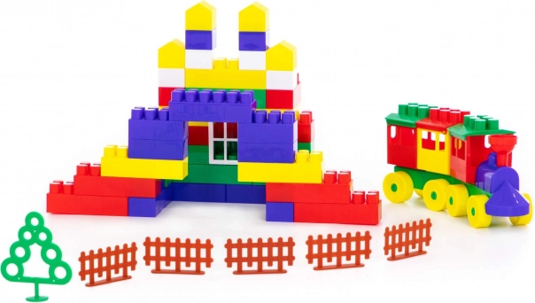 Le set contient une large gamme de blocs multicolores qui stimulent le développement de la créativité chez les enfants.