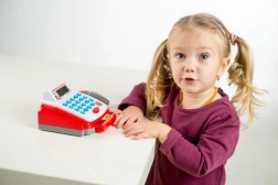 Cette caisse enregistreuse numérique compacte est un excellent complément à toute boutique pour enfants. Grâce à ses fonctions réalistes, les enfants s’initient à la gestion de l’argent, au scan des articles et aux opérations de base. Fabriquée en plastique résistant, elle est facile à utiliser et séduit d’emblée par ses effets lumineux et sonores.