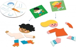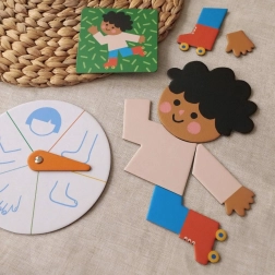 Faites tourner la roue et choisissez la pièce qui correspond au personnage. Les enfants apprennent naturellement les noms des parties du corps et leur emplacement de manière divertissante.