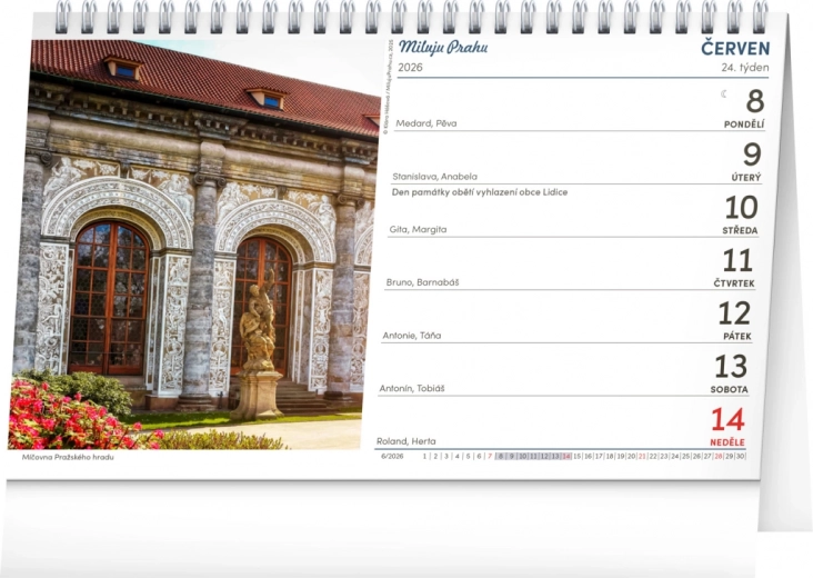 Découvrez la splendeur de Prague à travers les photographies du calendrier de bureau 2026 de la marque J’aime Prague. Ce calendrier propose de superbes prises de vue de la capitale et un calendrier tchèque pratique, incluant les prénoms, les jours fériés, les phases de la lune et une liste de prénoms élargie.
