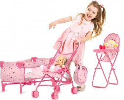 Le set pour poupées Trixy 3‑en‑1 de Chipolino offre une solution complète pour les petites personnes attentionnées. Le set comprend une poussette canne, une chaise haute, un lit, un sac à langer et un sac de transport. Tous les éléments sont conçus pour être légers et pliables afin de faciliter le transport et le rangement :