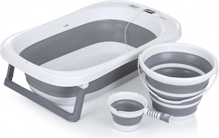 La baignoire est accompagnée d’un seau pliant et d’un gobelet de rinçage, ce qui en facilite l’utilisation. Équipée d’éléments de sécurité tels qu’un thermomètre et des pieds antidérapants, elle assure stabilité et sécurité pour votre enfant. Pour un vidage facile, la baignoire dispose d’un bouchon, évitant d’avoir à la soulever pour la vider.