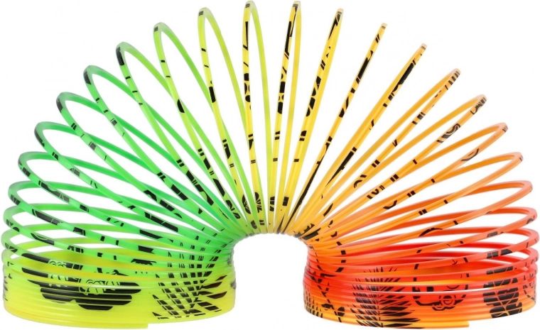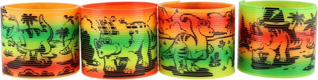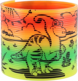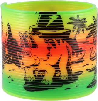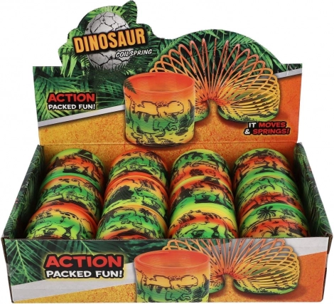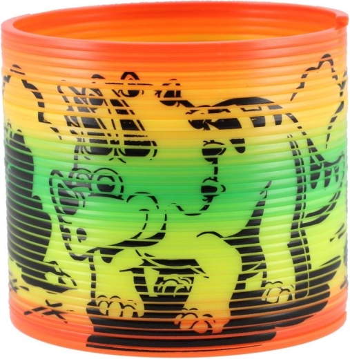 Spirale en plastique au motif joyeux de dinosaures qui ravira chaque enfant. Idéale pour jouer, “descendre les marches” et comme outil antistress.