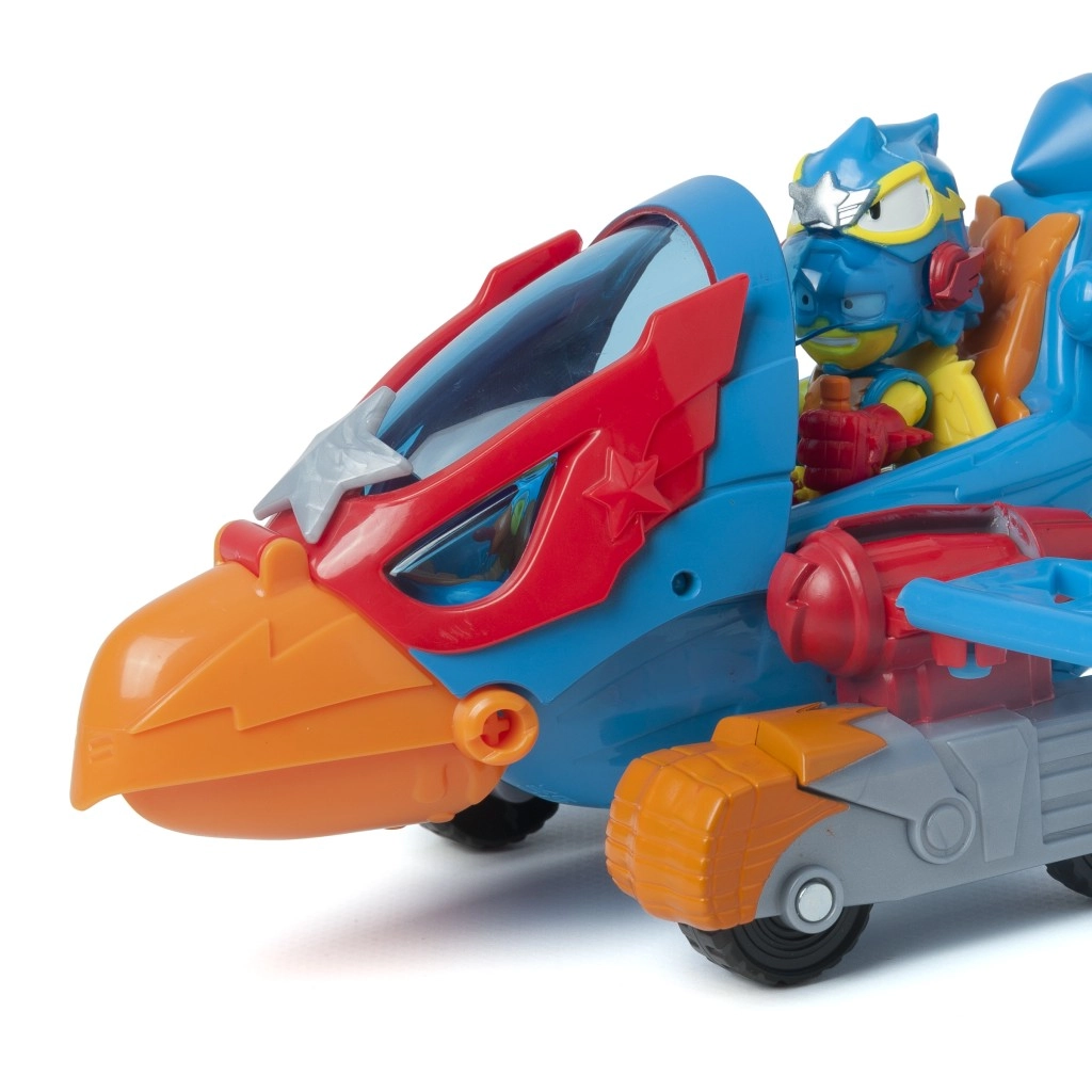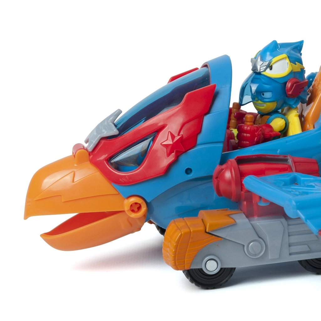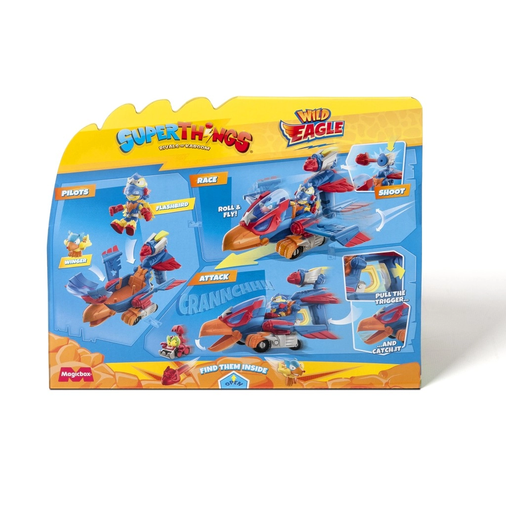 Plongez dans un monde d’aventures avec un Kid exclusif et un SuperThing exclusif, qui peuvent voler dans le cockpit du Jet Wild Eagle. Les ailes mobiles ajoutent au réalisme, tandis que la rotation de la gâchette promet d’abattre les méchants ou de les capturer dans le bec.