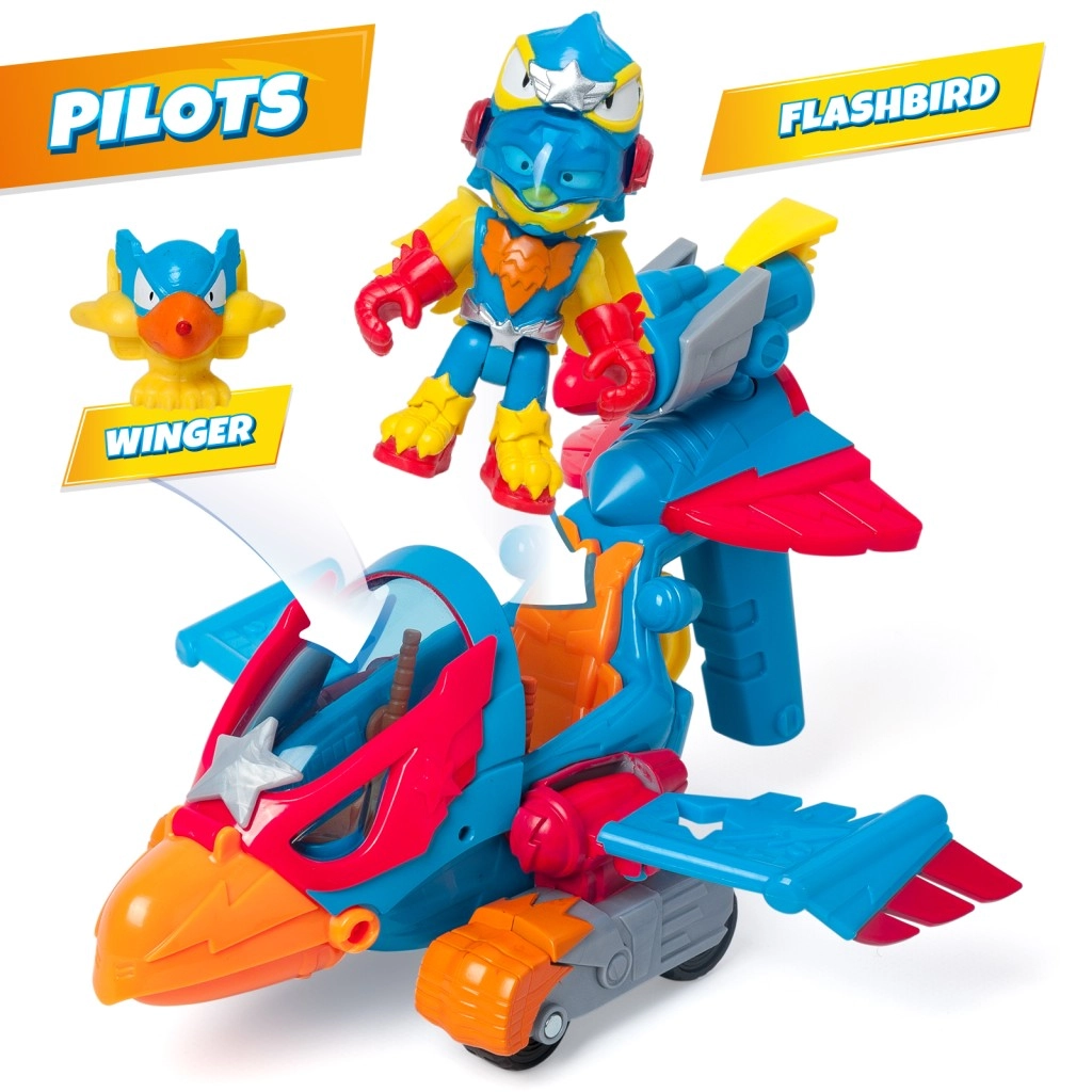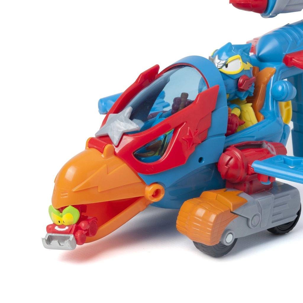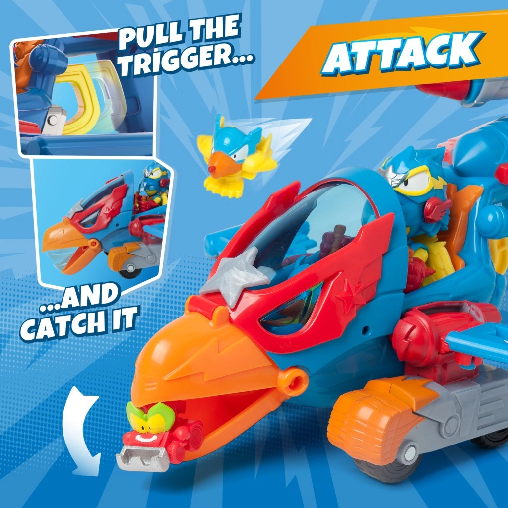 Plongez dans un monde d’aventures avec un Kid exclusif et un SuperThing exclusif, qui peuvent voler dans le cockpit du Jet Wild Eagle. Les ailes mobiles ajoutent au réalisme, tandis que la rotation de la gâchette promet d’abattre les méchants ou de les capturer dans le bec.
