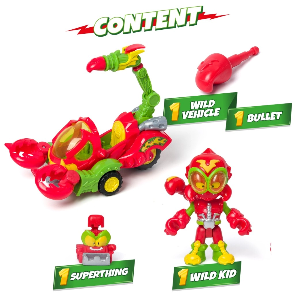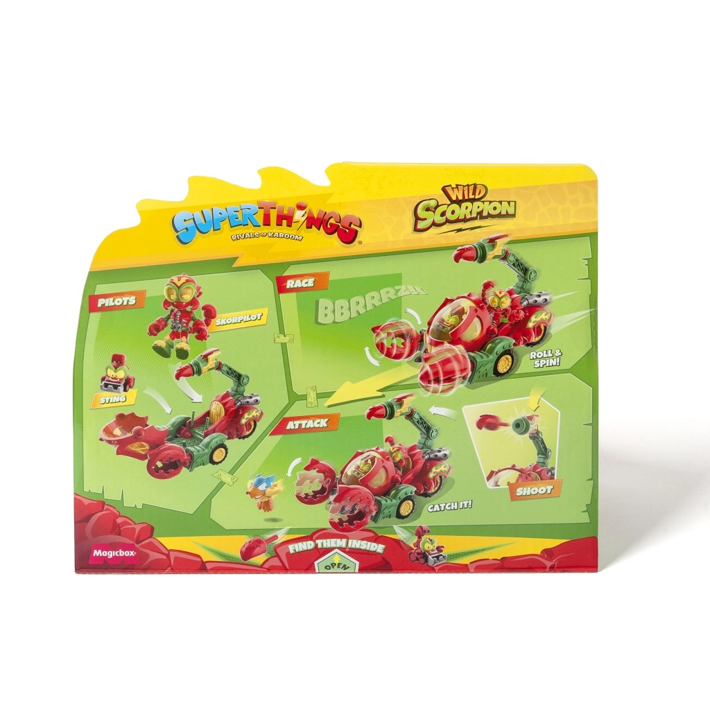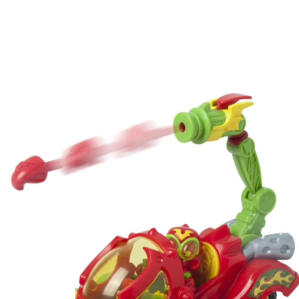 Libère toute la puissance du scorpion avec un Kid exclusif et un SuperThing pouvant prendre le volant. Le Scorpion possède des pinces capables d’attraper ses adversaires et qui tournent lorsqu’il se déplace. En plus, tu peux propulser les héros avec son puissant dard.