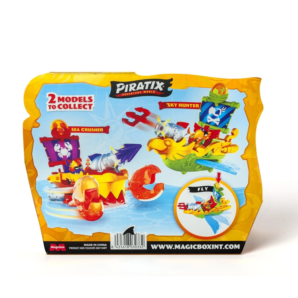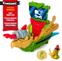 - 1 navire pirate, 1 figurine Piratix exclusive, 1 pièce de trésor exclusive, 1 accessoire, 1 canon, 1 boulet de canon exclusif