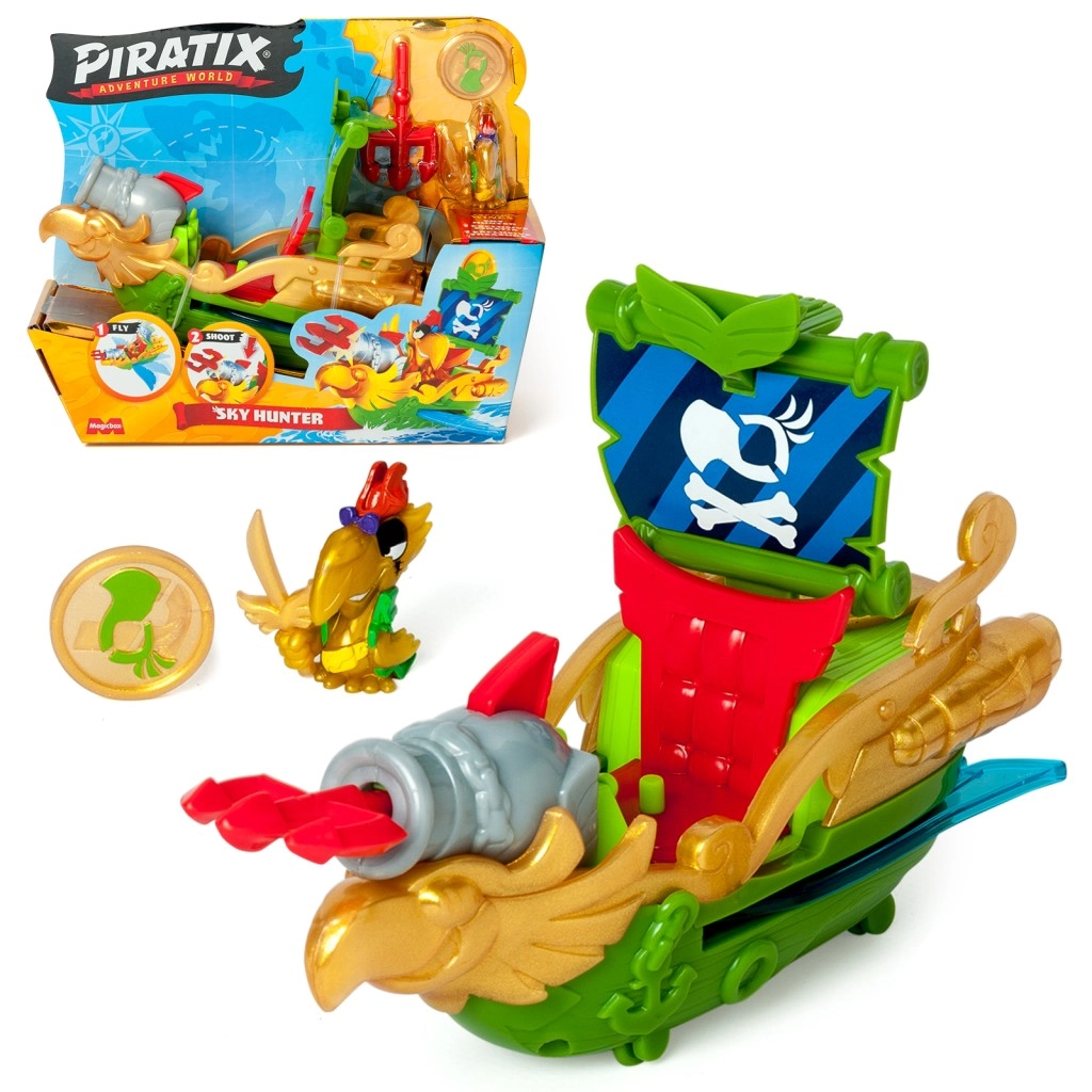 Pars pour une expédition pirate palpitante avec le monde d’aventure Piratix Sky Hunter. Ce set de jeu coloré te permet d’entrer dans un univers de fantastiques aventures maritimes avec des éléments volants et de tir.