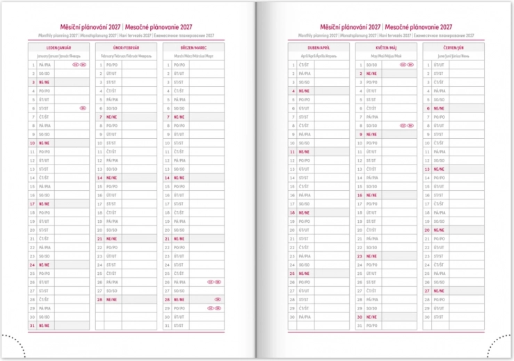 - des calendriers de planification mensuels pour les années 2026 et 2027