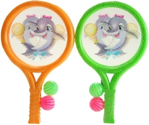 Ces raquettes en plastique pour enfants, ornées de motifs joyeux de dauphins, sont destinées aux enfants dès 3 ans. Elles sont légères, sûres et faciles à tenir en main. Ce set contient :
