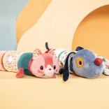 Le grand rouleau hochet Lilliputiens en forme de chien Jules est le compagnon idéal pour votre enfant. Composé de quatre rouleaux, chacun avec son propre son et sa propre texture, il est parfait pour le développement des sens.