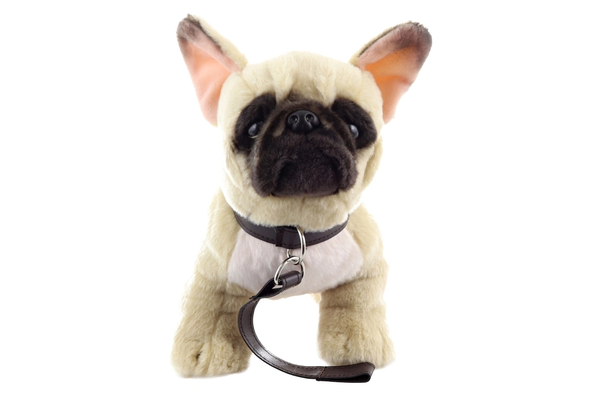Bouledogue français en peluche écologique avec un aspect réaliste est le compagnon idéal pour les enfants de tous âges. Cette adorable peluche est livrée avec une laisse pratique qui encourage le jeu et l'interaction.