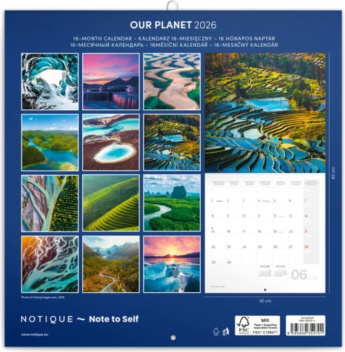 Découvrez les beautés de notre planète avec le calendrier Notre Planète 2026. Ce calendrier comprend :
