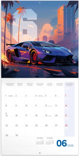 Ce calendrier bloc-notes vous apportera chaque mois une joie indescriptible grâce aux visuels époustouflants de voitures fantastiques. Le calendrier inclut :