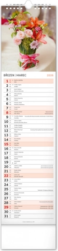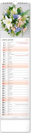 Le calendrier mural Notique Fleurs 2026 allie esthétique et fonctionnalité. • De superbes photographies de fleurs vous accompagneront tout au long de l’année. • Son format pratique 12 x 48 cm s’intègre facilement dans tout espace. • Informations bilingues en tchèque et en slovaque, incluant prénoms, fêtes, journées commémoratives et phases lunaires. • Un espace pour vos notes quotidiennes vous aide à organiser vos tâches et vos projets efficacement.